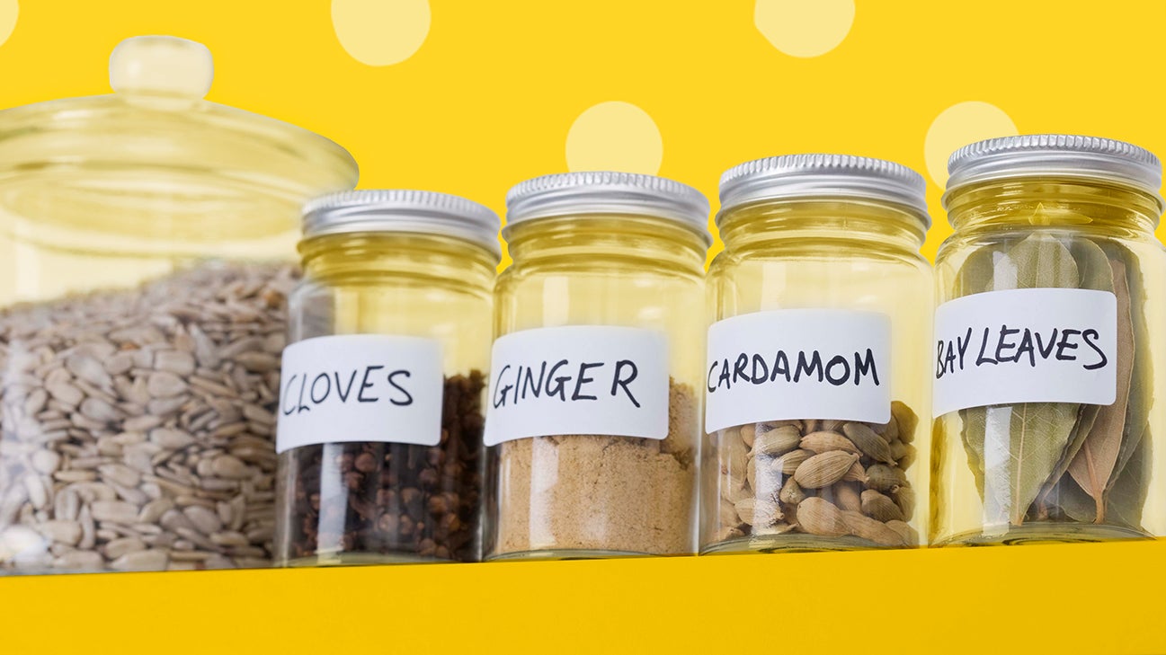 It’s best to store spices in airtight containers (glass or ceramic works best) and keep them away from heat (i.e., the stove) to avoid moisture. Glass jars will help spices retain more of their natural oils (where the flavor is!).