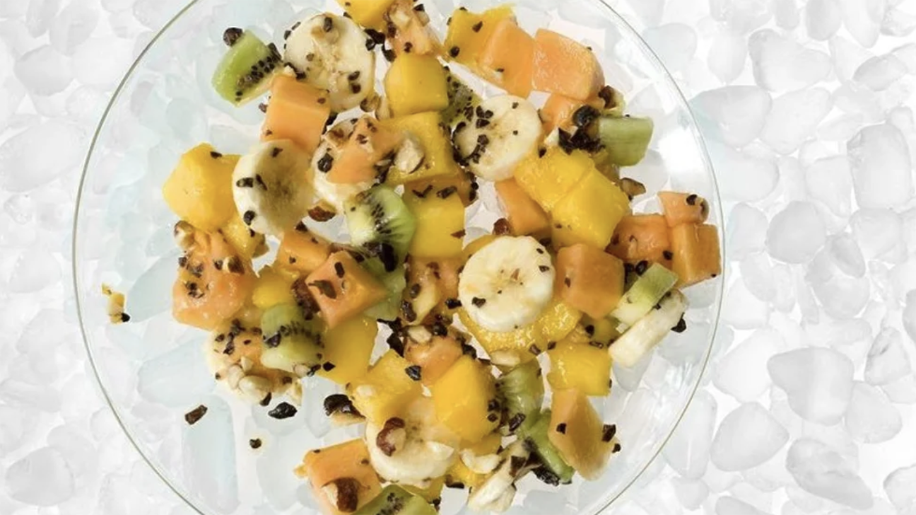 For another healthy dessert that’s still plenty sweet—and comes together even more quickly—this fruit salad combines ripe banana with kiwi, mango, and papaya; lime juice and agave balance the sweet-tart flavors, and cacao nibs and hazelnuts add crunch. Get our Tropical Fruit Salad with Cacao Nibs recipe.