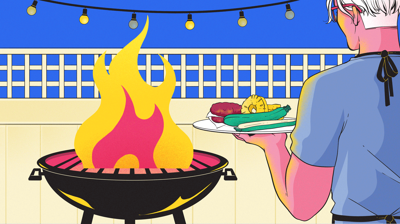 - For veggies, coat in oil, turn frequently, and avoid too much charring (unless people love that). Try this Grilled Parmesan Asparagus recipe, and see more about grilling veggies, plus vegan chefs’ tips for the best veggie BBQ.